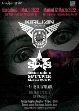 Aquest esdeveniment ha estat cancel·lat pel promotor pel següent motiu:Comunicado: SE POSPONEN los shows para Madrid y Barcelona. de KIRLIAN CAMERA + SIGUE SIGUE SPUTNIK" Problemas por restriccioners COVID no nos permiten asegurar la asistencia de todos los Artistas hasta más adelante.