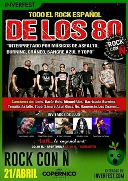 “Rock con Ñ”. No se trata de un tributo, si no de formar una banda con músicos de Asfalto, Topo, Burning, Sangre Azul, Craneo... para rescatar canciones que fueron himnos en los ochenta, de grupos a los que pertenecen estos musicos de “Rock con Ñ” y de otros que hicieron historia en esos años.
