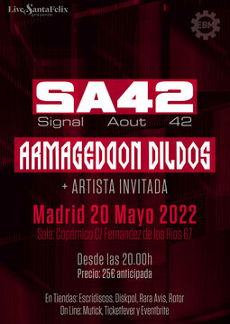 Dieses Event wurde vom Veranstalter aus folgendem Grund abgesagt:COMUNICADO CANCELACIÓN CONCIERTOS SA 42 Debido a la baja demanda de entradas en preventa por el contexto actual, la promotora LiveSantaFelix con el acuerdo de Signal Aout 42 ha decidido cancelar estos conciertos.
