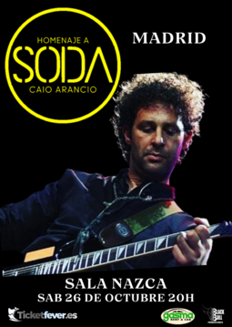 CAIO ARANCIO es SODA Este show es un repaso por todas las épocas del procer del rock hispanoparlante GUSTAVO CERATI, de la mano del cantante CAIO ARANCIO y su banda de notables músicos de la escena del Rock Argentino. Caio y su banda con su Tributo a Soda Stereo en la sala Copérnico de Madrid el sábado 26 de 0ctubre de 2024, CAIO, reconocido vocalista con una voz extremadamente similar a la del ícono del rock y su banda logran en un recorrido sonoro y emocional, llevar al espectador de paseo por la vida y obra de SODA STEREO.