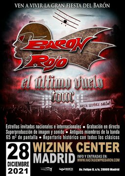 INFORMACIÓN IMPORTANTE: Debido a la situación creada por el Covid 19, la participación de artistas invitados está sujeto 100% a cancelaciones o modificaciones. Se garantiza la actuación de Barón Rojo, pero la participación de artistas externos a la banda depende de la situación sanitaria de los mismos.