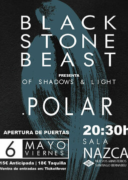 La nueva banda madrileña BLACK STONE BEAST presenta su álbum "Of shadows and light" en su primer concierto en la capital. Comparte cartel con .Polar, una joven banda de rock alternativo que promete redondear una noche de potencia, rock, luces, música de estadios... pero en exclusiva para vosotr@s.