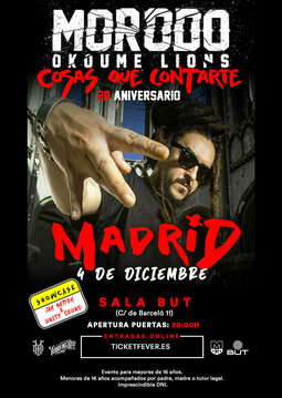 Este próximo 4 de diciembre MORODO y Okoumé Lions estarán en la Sala But de Madrid con un show especial con el que pondrán fin a la gira 20º aniversario de "Cosas Que Contarte". Será una noche llena de buena vibra, buenos recuerdos y alguna que otra sorpresa.