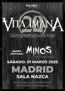 VITA IMANA celebra 20 años en 2025 y lo estará festejando en Madrid el 01 de Marzo en la sala Nazca Live. Para la fecha tan señalada, estarán presentando disco en casa MINOS.