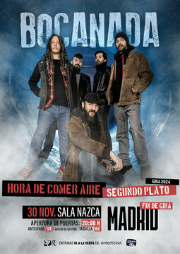 A la vista del éxito de público y crítica obtenido por la reciente gira de Bocanada ‘Hora de comer aire 2024’, presentamos ‘Hora de comer aire 2024 Segundo plato’, nuevo tour en el que los de Berriozar volverán a reivindicar con autoridad y poderío su espacio en la escena. Y todo ello en puertas del 18º aniversario de la fundación del grupo. Así pues, su incendiario y volcánico directo volverá a retumbar a lo largo y ancho del estado, ¡Entradas ya a la venta!