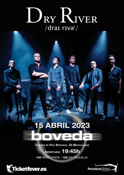La banda castellonense Dry River, presenta su cuarto disco de estudio, producido por Carlos Raya. Después de triunfar en los festivales de verano y sus primeras fechas de esta nueva gira, Dry River volverán a regalar su talento a sus fans de la ciudad condal. Un concierto muy especial donde el público podrá disfrutar de sus temas más clásicos así como de su nuevo trabajo discográfico.